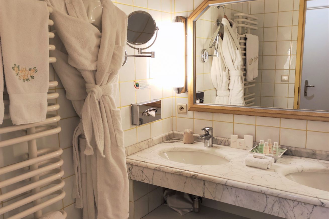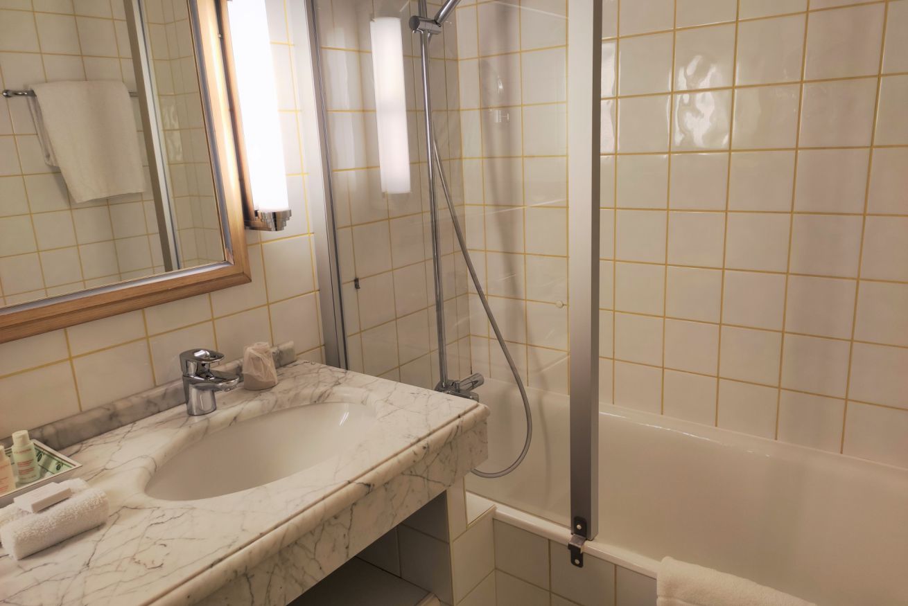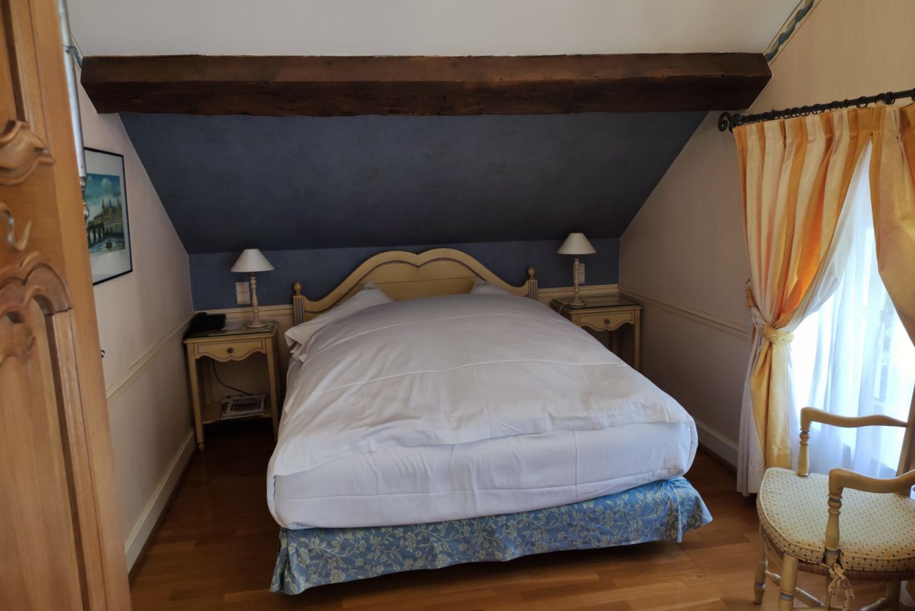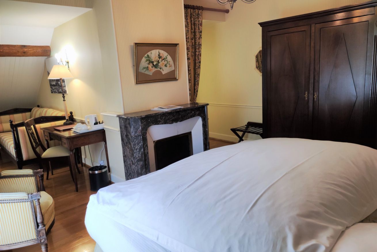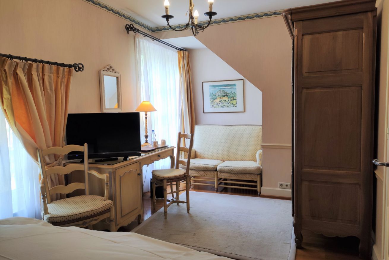 Chambre de 20 m2 environ - 1 lit de 160 cm ou 180 cm. Équipements en chambre : coffre-fort, bureau, coin salon avec canapé, salle de bain avec douche ou baignoire, toilette séparée, peignoirs, chaussons, TV écran plat, chaînes internationales, mini bar, téléphone, WIFI gratuit. Située au 1er étage sans ascenseur